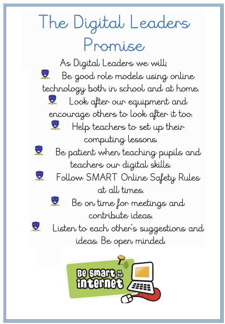 Digital Leaders meet with Miss Parker each half-term. During these meetings they look at different aspects of online safety. Digital Leaders are then responsible for delivering the key messages from their meetings back to their peers, in their classes and across school. We believe that pupils should be educated about online safety not only by their teachers but also by their peers. Digital Leaders use presentations to educate classes and also to deliver whole-school assemblies.