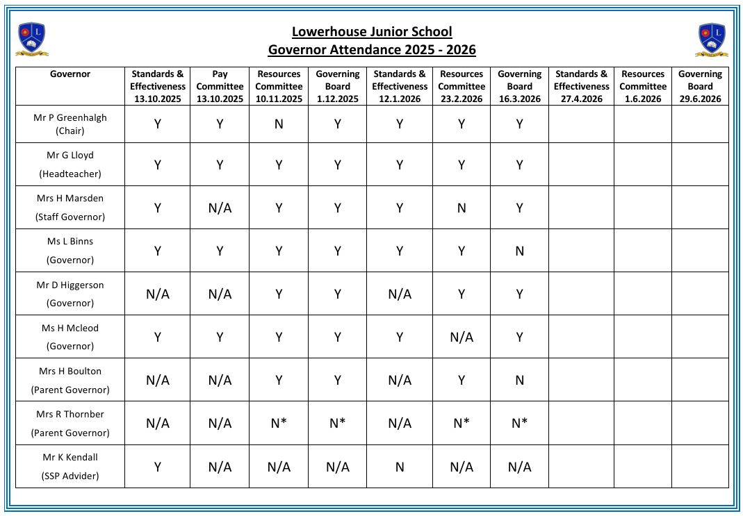 • Governor Attendance at Meetings