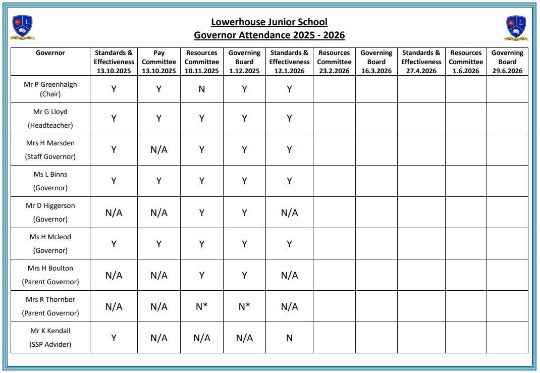 • Governor Attendance at Meetings